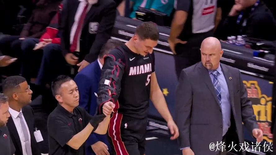 约维奇遭犯规扣篮失衡摔落,手肘受伤需护臂保护下场治疗